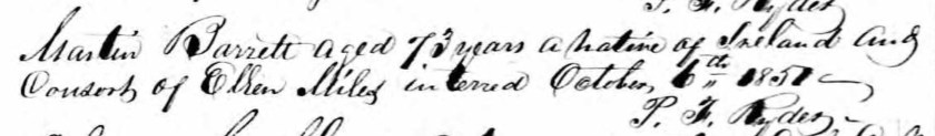 While I have written much about Patrick and Mary Barrett, the patriarchs of the Catawissa Barrett clan, famine refugees, and Missouri homesteaders, I’ve neglected Patrick’s father Martin. Death records that surfaced this weekend got me thinking about him.