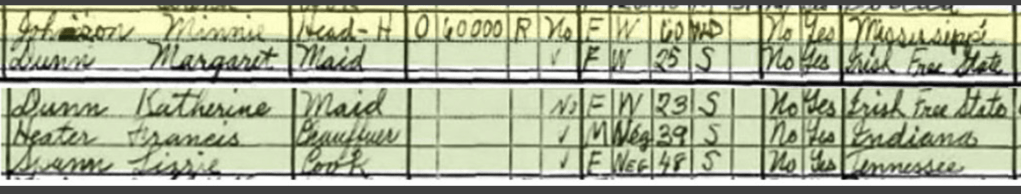 Although Mrs. Johnson gave her age as 60 on the U.S. Census form in 1930, she was more like 72, according to the dates on her tombstone.
